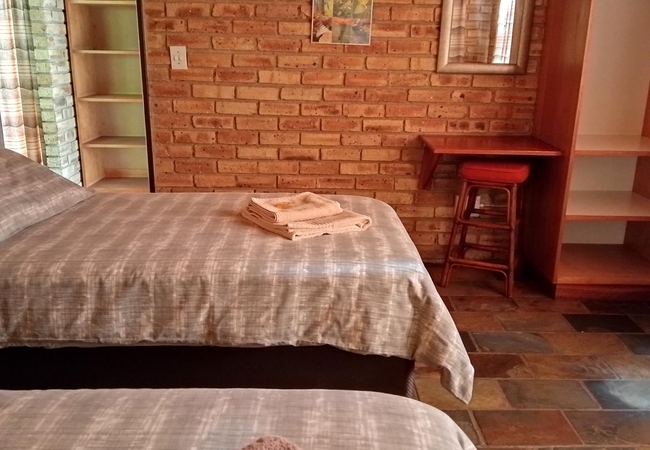 The first bedroom is furnished with a Queen-size bed and has an en-suite bathroom fitted with a spa bath, toilet and basin. The second room is furnished with twin beds and makes use of a separate bathroom fitted with a shower, toilet and basin.