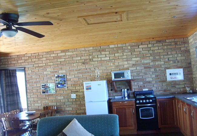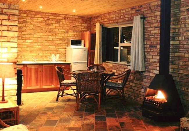 There is a well-equipped kitchen with a fridge, stove/oven, toaster, a microwave, kettle, crockery and cutlery. There is a dining table where you can enjoy your meals and a comfortable lounge area with a log fireplace.
