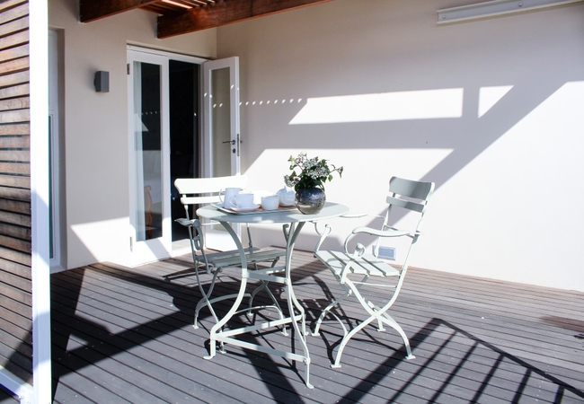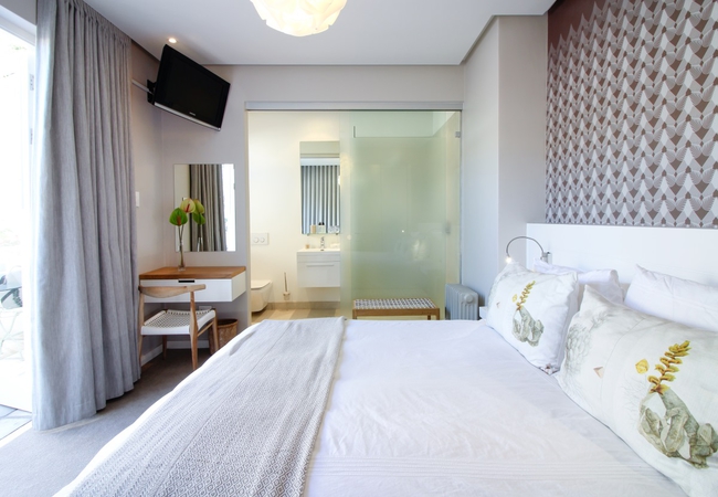 Double en-suite room with shower only. Extra length King-size bed or twin bed option. Internet access, DSTV, hairdryer, safe, underfloor heating, fan. Private outdoor patio leading into the garden.