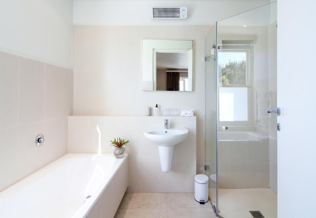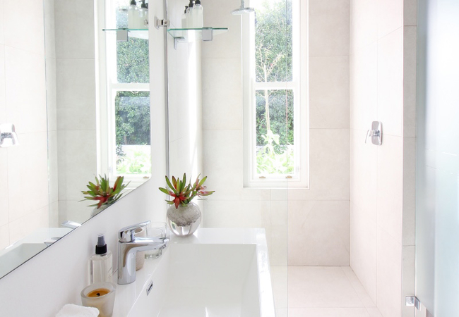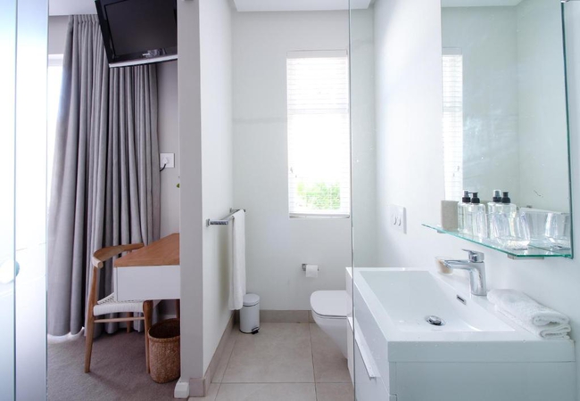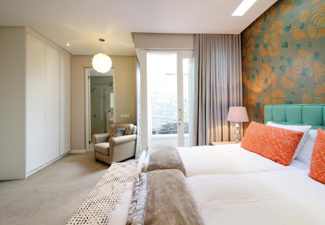 Double en-suite room with shower and bath. Extra length King-size bed or twin bed option. Internet access, DSTV, hairdryer, safe, underfloor heating, fan. Small private courtyard with a water feature.