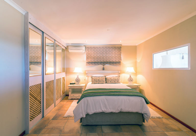 The West Wing is a spacious room with en-suite bathroom. It is furnished with a double bed and the en-suite bathroom is equipped with a shower, hand basins and WC. There is an HD TV with all DStv channels and the bedroom leads out onto a balcony overlooking the ocean. This newly built room on the second storey has TV, Air-conditioning, bar fridge and is very light and roomy with views of the sea. Well designed cupboards and vanities. Plugs for charging with USB plugs.