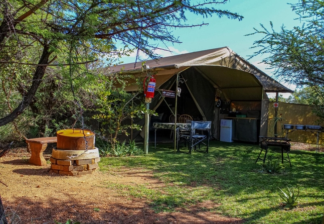 Each tent camp has its own charm, a kitchenette, and own braai, not to mention a cosy firepit for those crackling fire side camping stories.