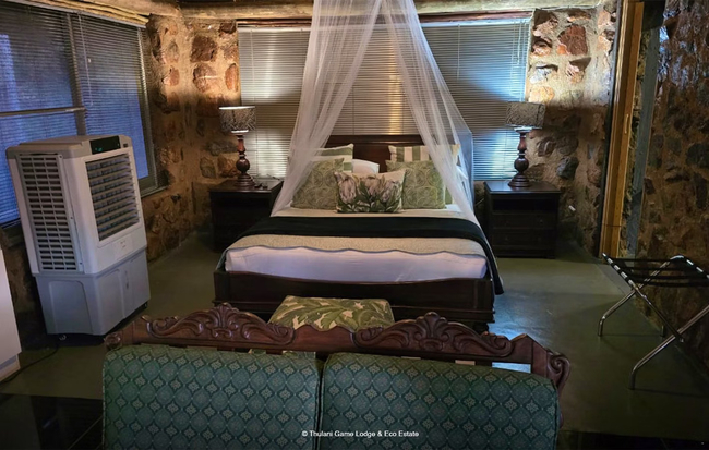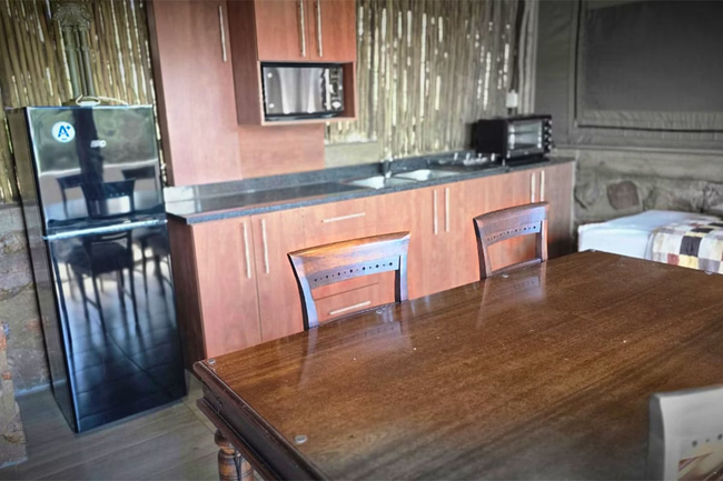 Thulani has four private African bush chalets, each boasting a queen bed, en-suite bathroom and kitchenette. Two of the units have a private jacuzzi available at an additional cost. All chalets come equipped with a tv, ceiling fans and some with additional air-conditioning. Each chalet has an outside braai area which includes a Weber.