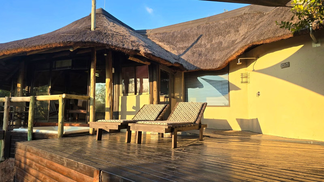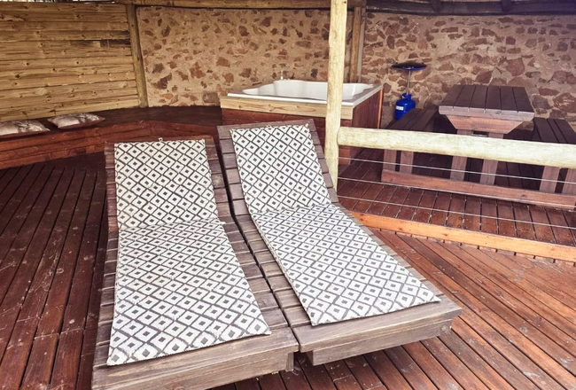 This contemporary bush chalet captures Africa with wide panoramic vistas of the bushveld, cosy-inviting spaces and a pleasant outdoor deck for spectacular sunsets. The chalet has a practical kitchenette and a private braai area, which includes a Weber. The unit can be booked with a jacuzzi at an additional cost. Booking of the private jacuzzi is R750 per day (subject to change without notice). This needs to be booked prior to check in and is subject to availability.