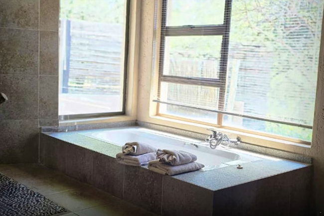 African Bush Chalets are furnished with a King-size bed. The unit includes a bath and outside shower, a kitchenette with a fridge, microwave, kettle and hot plate. The units all have small wooden decks and boma with weber braai. The unit can be booked with a jacuzzi at an additional cost. Booking of the private jacuzzi is R750 per day (subject to change without notice). This needs to be booked prior to check in and is subject to availability.
