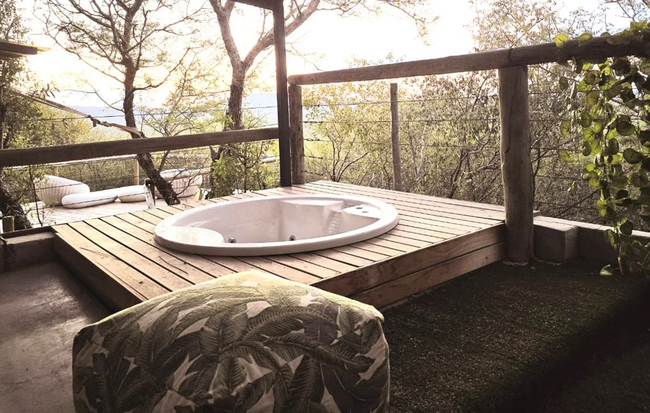 A selection of treatments are available. Guests can book a jacuzzi at the Bush Spa for private use, at an additional cost.