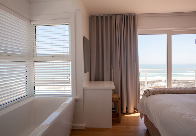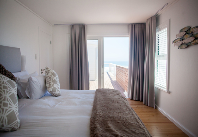 Thyme and Tide offers accommodation in a seven bedroom beach house in Yzerfontein on the Cape West Coast, just an hours drive from Cape Town. The house is is perched on the dunes and boasts magnificent views of the sandy beaches. The communal areas are open plan and flow into each other, with loads of break away areas to retreat to for some peace and quiet. The self catering home has seven bedrooms furnished with a King-size bed and rooms have gorgeous linen and down duvets. Two of the rooms can be made into twin beds on request. All rooms also have an en-suite bathroom, some with a shower only and some with both a bath and shower. There is an open plan lounge area which opens onto a wraparound wooden deck. This leads onto the fully equipped kitchen which has a separate scullery and lock up pantry. The dining room can open up both onto the sunny morning deck for breakfast or onto the other side where the braai area is located. This part of the Thyme and Tide has fabulous sea views and is protected from the wind making it great for both indoor and outdoor entertaining. Facilities: Free Wi-Fi Off street parking Fully alarmed with response unit Satellite DStv Explorer Indoor fireplaces Braai facilities Serviced daily with on site house manager and assistant. Pet Friendly: All house trained and well behaved pets are welcome. Owners are responsible for cleaning up after pets.