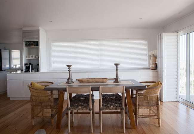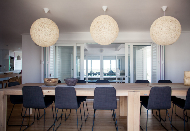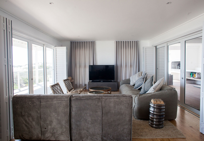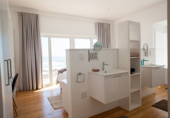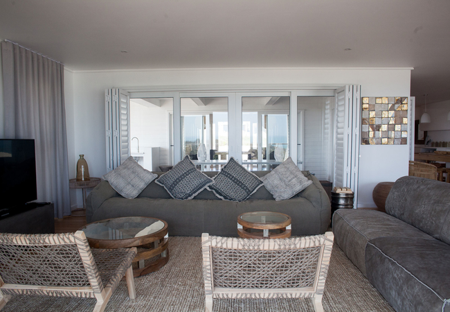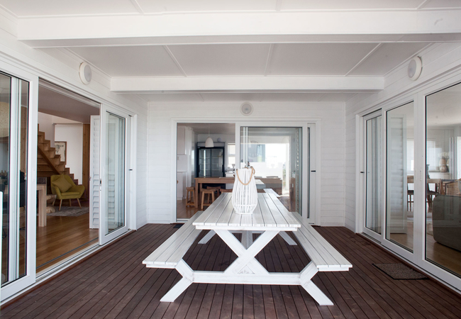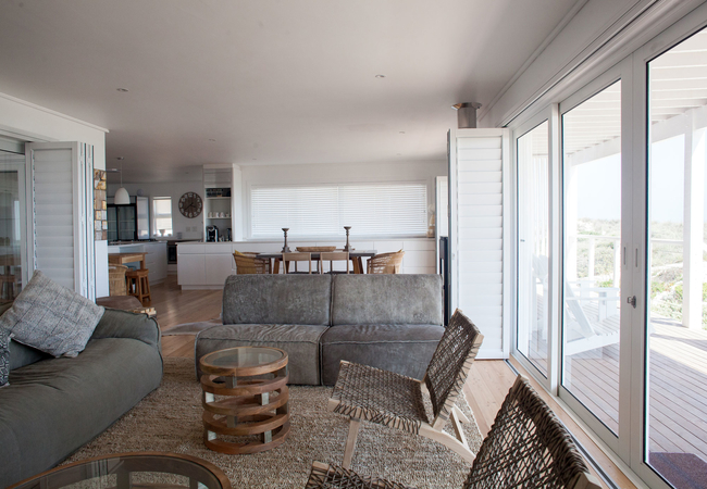 The dining room can open up both onto the sunny morning deck for breakfast or onto the other side where the braai area is located. This part of the Thyme & Tide has fabulous sea views and is protected from the wind making it great for both indoor and outdoor entertaining.