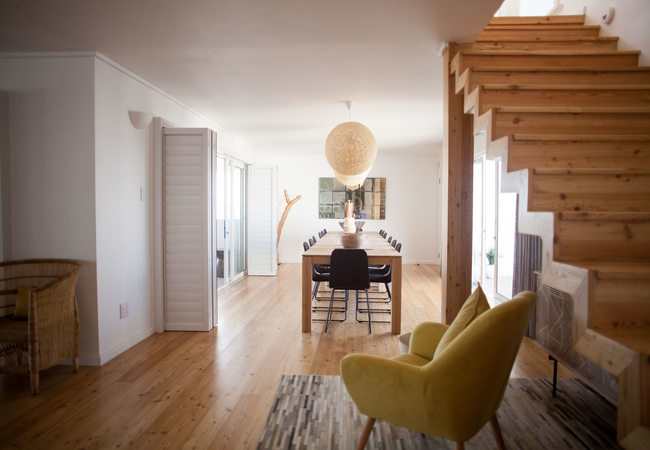Thyme & Tide offers accommodation in a seven bedroom beach house in Yzerfontein on the Cape West Coast, just an hours drive from Cape Town. The house is is perched on the dunes and boasts magnificent views of the sandy beaches.