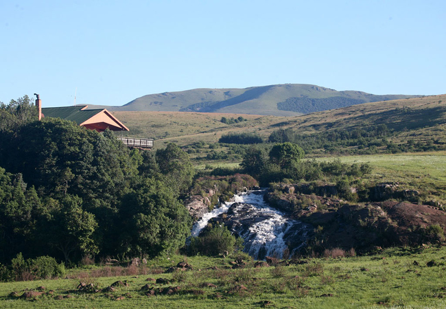 A comfortable and well-appointed Midlands Meander self catering accommodation lodge perched over the spectacular 30m Hleka Manzi (Laughing waters) waterfall on the upper reaches of the Elands River.