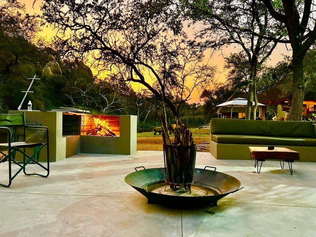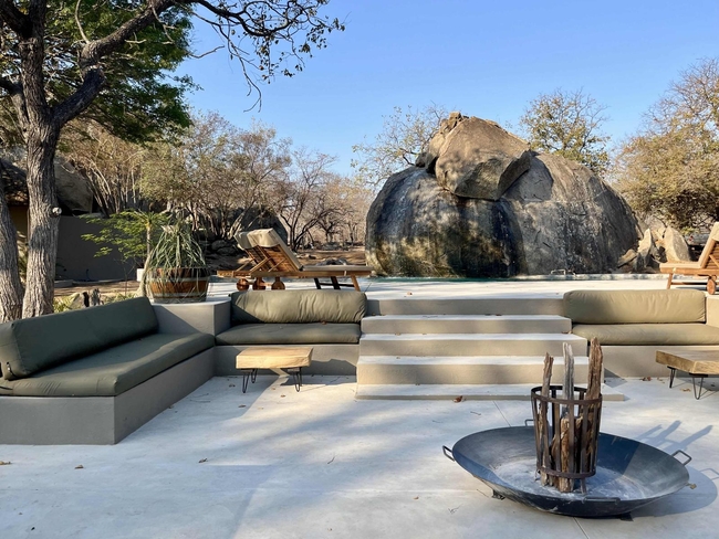 The communal Boma serves as the lodge's social heart, where guests gather to share experiences and forge lasting connections under the African sky. Adjacent facilities include an inviting bar and lounge area, anchored by a warming fireplace that provides the perfect ambiance for evening conversations. The sparkling swimming pool, surrounded by comfortable sun loungers, offers refreshing respite during warmer hours.