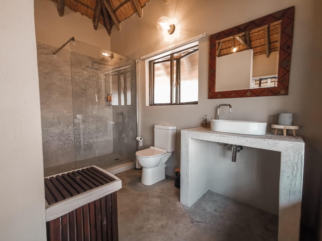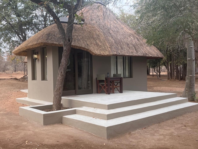 The African Chalet offers a comfortable and versatile retreat, featuring a king-size bed that can be converted into twin beds to suit your needs. The en-suite bathroom includes a shower, toilet, and wash basin, while thoughtful in-room amenities such as Wi-Fi, a heater, and complimentary bathroom essentials add to the convenience of your stay. Guests can relax on the private patio, which includes outdoor furniture and a dining area, all overlooking a tranquil garden with scenic views, perfect for unwinding in nature. Daily cleaning service is also provided for added comfort.