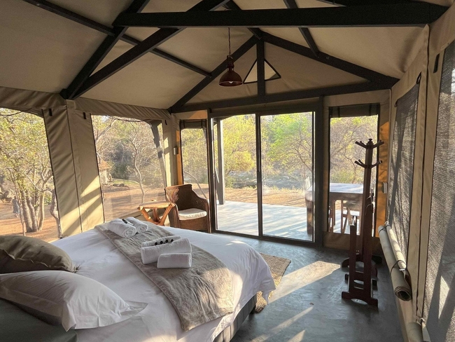 The lodge presents two distinct accommodation options, featuring elegantly furnished chalets alongside sophisticated safari tents, each meticulously crafted to ensure maximum comfort whilst maintaining authentic African character. Your chosen retreat, whether a private chalet or an atmospheric canvas pavilion, incorporates contemporary amenities without compromising the raw essence of bushveld living. Every guest quarters comes fully equipped with essential comforts and carefully selected furnishings that create an atmosphere of refined wilderness hospitality.