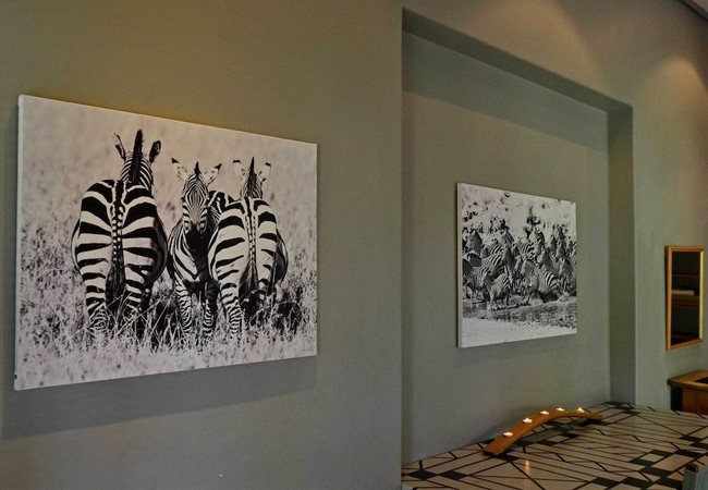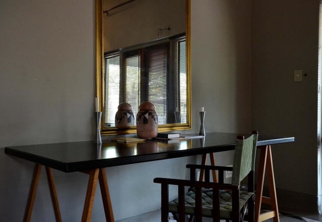 The Family Room is furnished with one double bed and one single bed and has a large veranda with seating area. The large en-suite bathroom is equipped with a bath and shower. The suite is decorated in earthy tones and opens onto a patio that overlooks the bush and is equipped with air-conditioning, tea and coffee making facilities and the beds are draped in mosquito nets. Free Wi-Fi is available at the lodge.