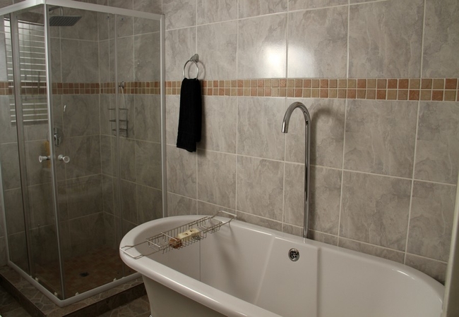 The Deluxe Suite is a luxurious and spacious room furnished with a King-size bed. The en-suite bathroom is equipped with hand basin, WC, bath AND shower. Other facilities include a balcony, air-conditioning, fridge, TV, coffee station. Each room has a TV with DStv, a private balcony, a bar fridge and tea / coffee making facilities.