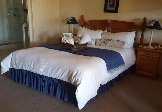 The suite is furnished with a double bed and has an en-suite bathroom with a shower. The suite has access to an outdoor patio and is equipped with a TV with selected DStv channels, a bar fridge, microwave, tea / coffee making facilities and a toaster.