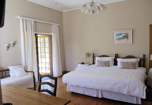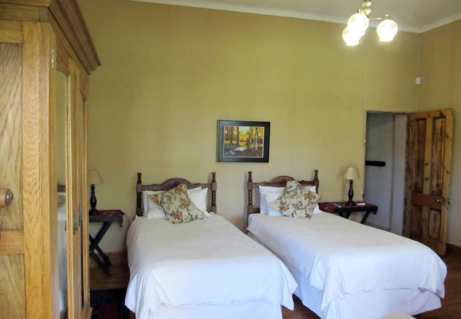 The Double/Twin rooms are furnished with twin / two single beds. The en-suite bathroom is equipped with a shower, hand basin and toilet. Other facilities include TV with DSTV and private entrance. Satellite TV, Free WiFi, No Smoking, Tea and Coffee, Bed Linen and towels supplied.