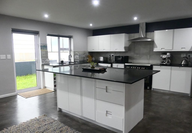 Travel Beach House has an open-plan kitchen, lounge and dining area. The kitchen is equipped for self-catering with a fridge / freezer combo, an oven and stove, a microwave, and a coffee machine, as well as a dishwasher, and as expected, all the utensils and crockery required to cater for yourselves.
