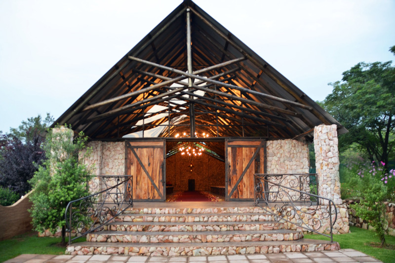 Our indoor chapel, is built out of stone, with exposed beams, wrought iron chandeliers and balconies and massive railway sleeper doors. The chapel can seat up to 250 guests.