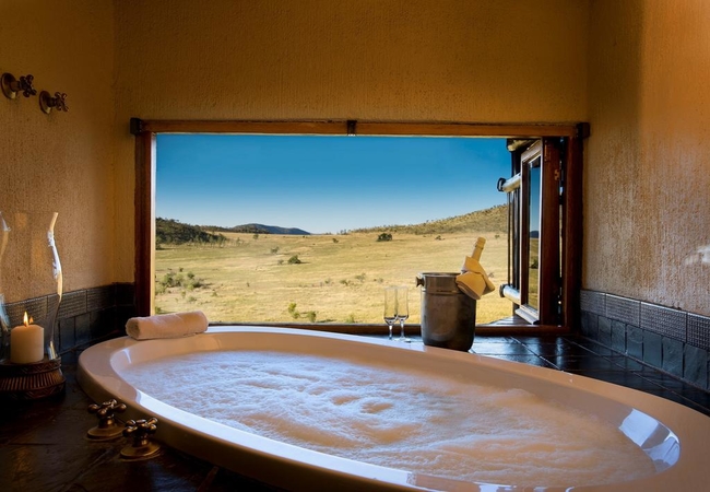 The sunken bath in the luxury cottages has its own private view of the waterhole. What a way to relax and forget the pressures of the city life and to soak in the sights and the sounds of the African bush.