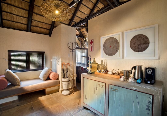 Each of Tshukudu's luxury cottages are equipped with everything you could possible need from walking sticks to bubble bath. You will find a safety deposit box, mini bar, hairdryers, books and magazines as well as a tea and coffee facility. Slate floors and the thatched roof keep you cool in the hottest weather, and wood burning fires and hot water bottles keep you warm during cold winter nights.