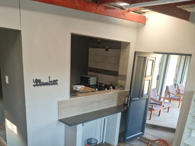 Room 12, Bush View, offers a private and tranquil escape overlooking the scenic African bushveld. This non-smoking room features a comfortable queen bed with an en-suite bathroom equipped with a shower, bathroom amenities, a hairdryer, and a bathrobe for added comfort. Guests can enjoy a small kitchenette with a toaster, bar fridge, and coffee/tea facilities, perfect for light self-catering. The room also includes air conditioning, a TV, a personal safe, and complimentary Wi-Fi. A private patio with outdoor seating enhances the experience, and a cleaning service ensures a comfortable, well-maintained stay.