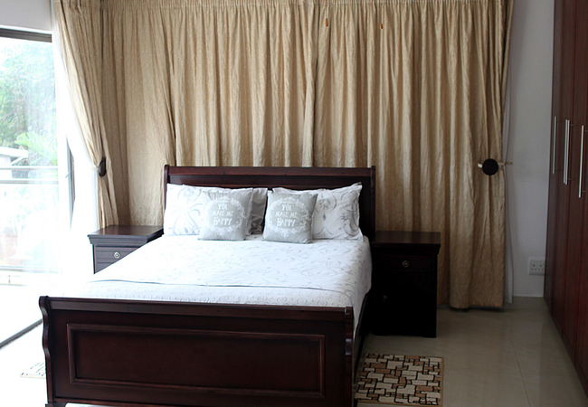 The third section has a lounge and three bedrooms and two bathrooms. The first room has a King-size bed and an en-suite bathroom. The second and third rooms each have a Queen-size bed and share the other bathroom.