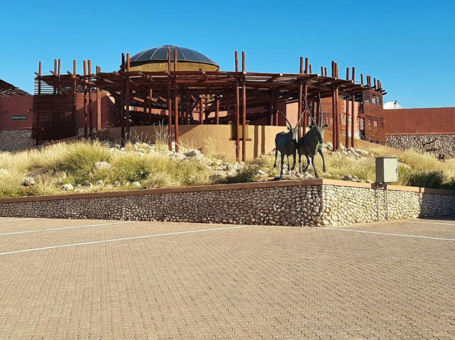 Accessing the park is facilitated through five gates spanning three countries: South Africa's entry point is via the Twee Rivieren gate, Namibia's through the Mata-Mata gate, and Botswana's through the Two Rivers, Mabuasehube, and Kaa gates.
