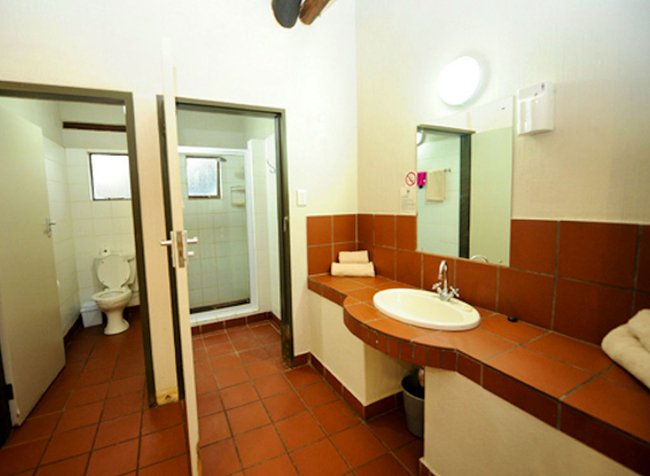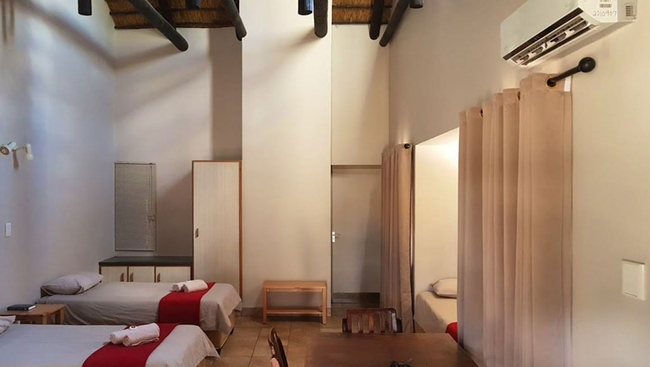 This unit is adapted for guests with mobility impairment with wide doorways, roll-in showers, grab rails, and push levers. These family cottages each contain one bedroom, one bathroom, and an open-plan kitchen and dining area. The bedroom is furnished with two single beds, and a bathroom fitted with a shower, toilet, and washbasin. There are two additional single beds in the kitchen area. The cottages are air-conditioned. The kitchen is well-equipped for self-catering with a fridge-freezer, 2-plate hot-plate, a microwave, kettle, toaster, and cutlery and crockery. There is a 4-seater dining table and chairs. Each cottage has a patio with braai facilities.
