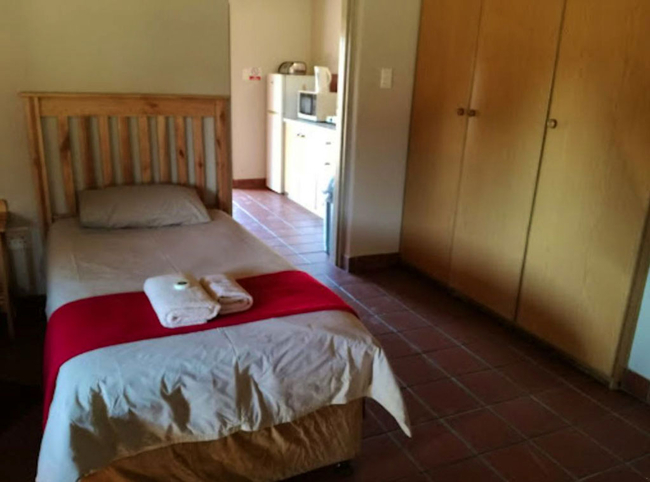 These units are adapted for guests with mobility impairment with wide doorways, roll-in showers, grab rails, and push levers. The cottages each contain one bedroom, one bathroom, and an open-plan kitchen and dining area. The bedroom is furnished with two single beds, and a bathroom fitted with a shower, toilet, and washbasin. The cottages are air-conditioned. The kitchen is well-equipped for self-catering with a fridge-freezer, 2-plate hot-plate, a microwave, kettle, toaster, and cutlery and crockery. There is a 2-seater dining table and chairs. Each cottage has a patio with braai facilities.