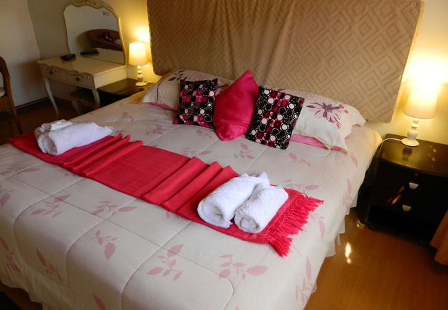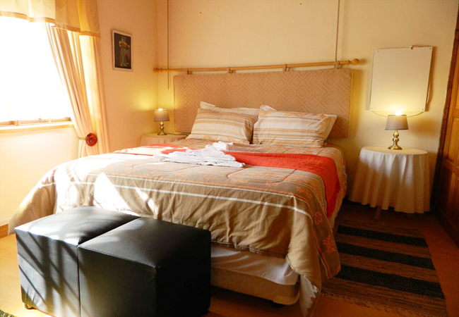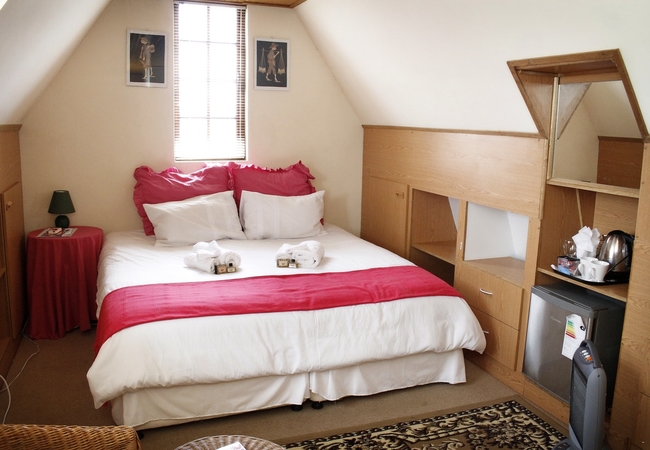 This room has two single beds that can be converted into a king size bed and a sleeper couch. There is an en-suite bathroom and the room has a flatscreen TV with Premium DStv, a heater, fan and minibar fridge.