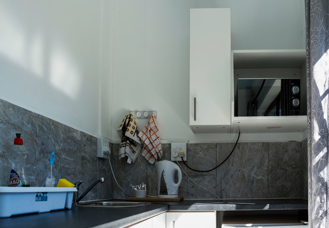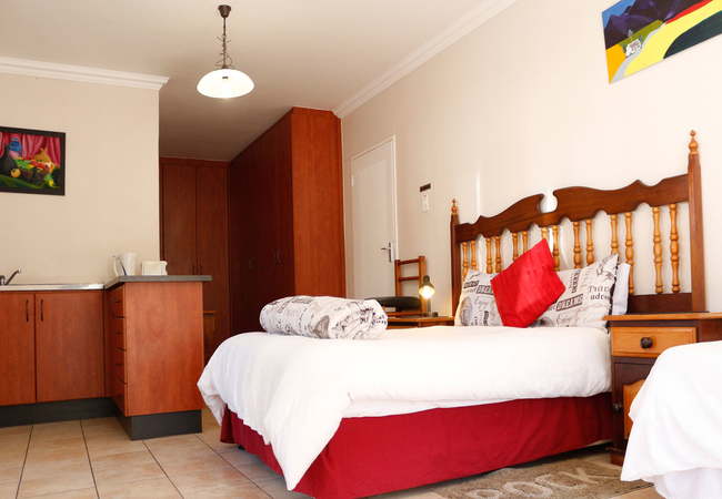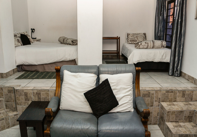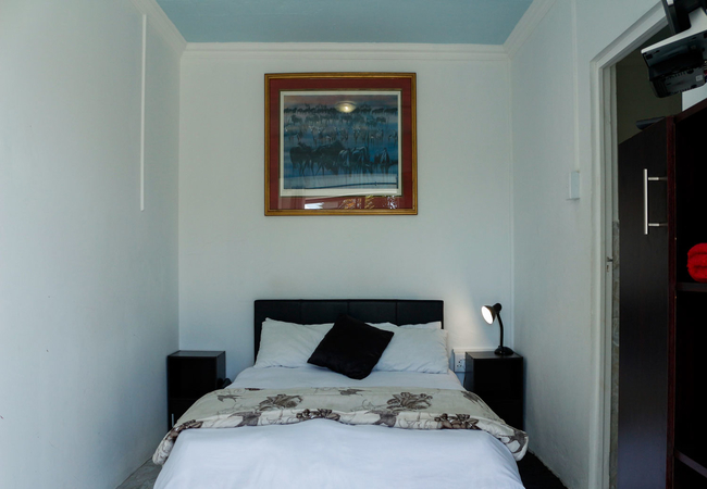 Bachelor Unit, Sleeps three, double bed plus 1 x single bed. A well-equipped kitchenette with microwave, fridge, two plate stove, cutlery and crockery. Open Plan Living and Bedroom area, TV with DSTV Bouquet. Bathroom with shower. Private entrance and secure parking behind remote gate. Features: Double beds, M-Net, Local channels, DStv, Private bathroom, Shower only, Balcony/patio, Self-catering, Single beds, Television