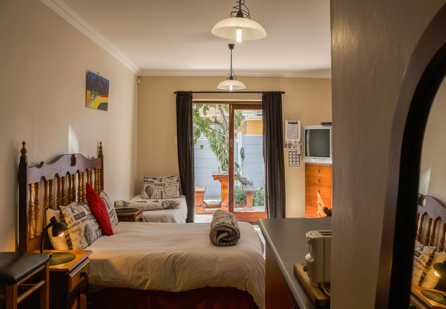 Pool 2 Unit, Sleeps two, double bed. A well-equipped kitchenette with microwave, fridge, two plate stove, cutlery and crockery. Open Plan Living and Bedroom area, TV with DSTV Bouquet. Bathroom with shower. Private entrance and secure parking behind remote gate. Features: Double beds, M-Net, Local channels, DStv, Private bathroom, Shower only, Self-catering, Sleeper couch, Garden views, Television, Satellite TV, Tea and Coffee Facilities, Wi-Fi, Internet Connection, No Smoking in Rooms, Swimming pool views