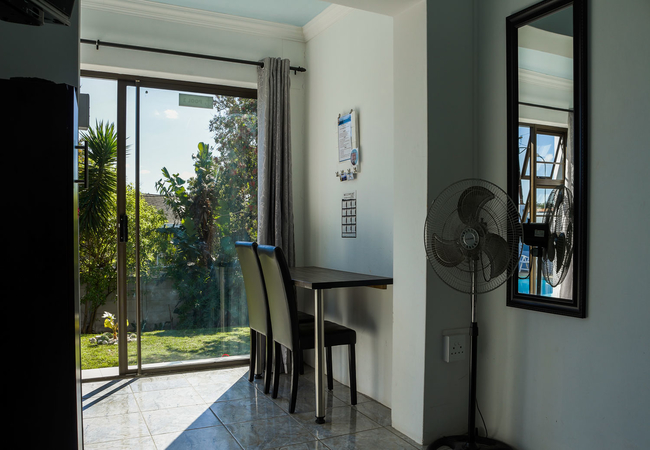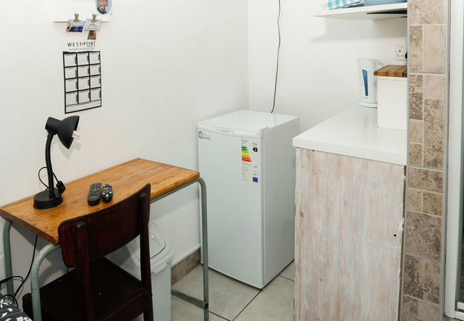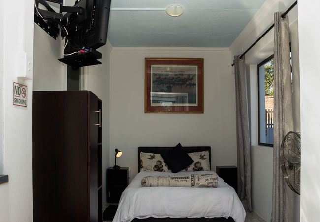 Single Unit, Sleeps One single bed. Private entrance and bathroom. A well-equipped kitchenette with microwave, fridge, two plate stove, cutlery and crockery. TV with DSTV Bouquet. Bathroom with shower. Private entrance and secure parking behind remote gate. Features: Double beds, M-Net, Local channels, DStv, En-suite, Shower only, Patio, Self-catering, Fan.