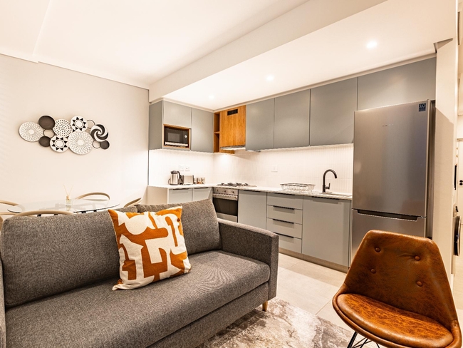 The Tyne complex ensures a seamless stay with backup power for common areas during loadshedding. Onsite amenities include a small clubhouse, communal kitchen, gym, private meeting rooms, shared workspace, covered barbecue facilities, and an outdoor flat-screen TV. Additionally, the complex boasts a pool, communal steam room, 24/7 security with access control, secure covered parking, and elevator access.