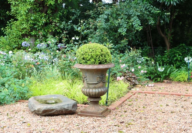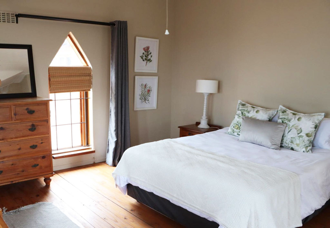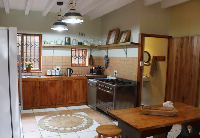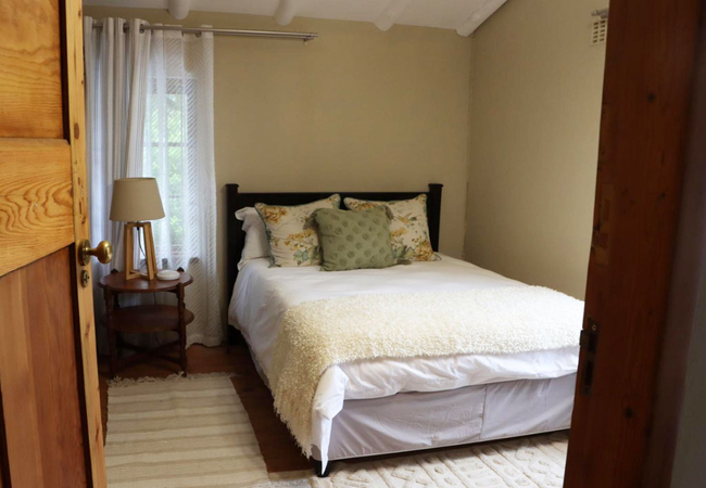 Udayana House has four bedrooms upstairs. The first bedroom is furnished with a King-size bed and has an en-suite bathroom fitted with a shower, double basins and toilet. The second room is furnished with a Queen-size bed. The third room is furnished with a double bed and is joined to a smaller room with a three-quarter bed so is suitable for a family room. This room has direct access to the family bathroom fitted with a bath, shower, toilet and basin. Other rooms can access the main bathroom via a door in the passage. The fully equipped kitchen including a dishwasher, complemented by a spacious lounge with a TV with Open View decoder and a dining area, provides a perfect setting for relaxation. There is a guest toilet located just off the kitchen area. Step outside onto the patio furnished with outdoor seating and a dining bench, ideal for alfresco meals. The extensive plush green garden creates a serene ambience, and the inviting pool adds a refreshing touch. The pool has a safety net but is not fenced off. Portable lights are available in case of loadshedding.