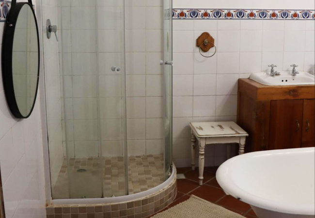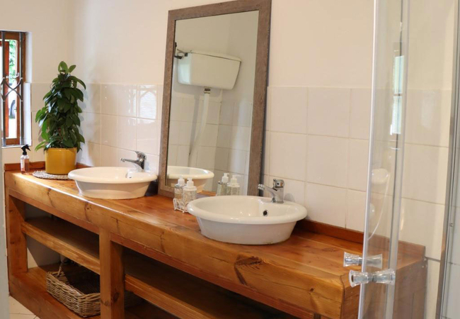 Udayana House is a holiday home in Assagay with four upstairs bedrooms. The first bedroom is furnished with a King-size bed and has an en-suite bathroom fitted with a shower, double basins and toilet. The second room is furnished with a Queen-size bed. The third room is furnished with a double bed and is joined to a smaller room with a three-quarter bed so is suitable for a family room. This room has direct access to the family bathroom fitted with a bath, shower, toilet and basin. Other rooms can access the main bathroom via a door in the passage.
