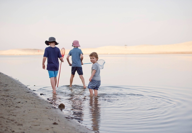 Children enjoy the art of playing whether it is fishing with gillies or sand boarding on the dunes. This is truly a child's dream holiday where they run around bare feet in the mud, slip and slide on the slippery slide or where they make holiday momentos in the creativity corner.