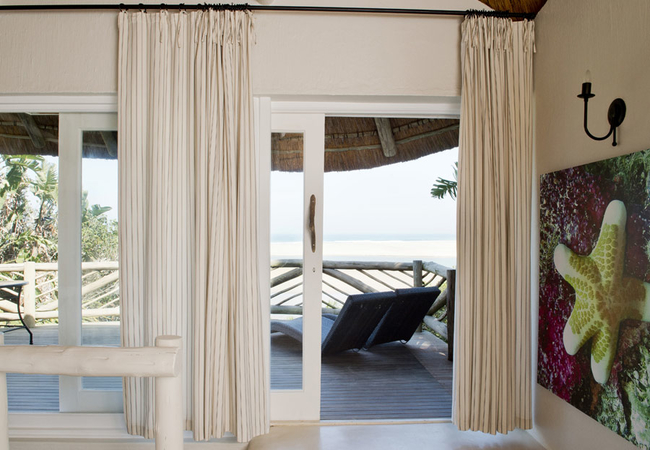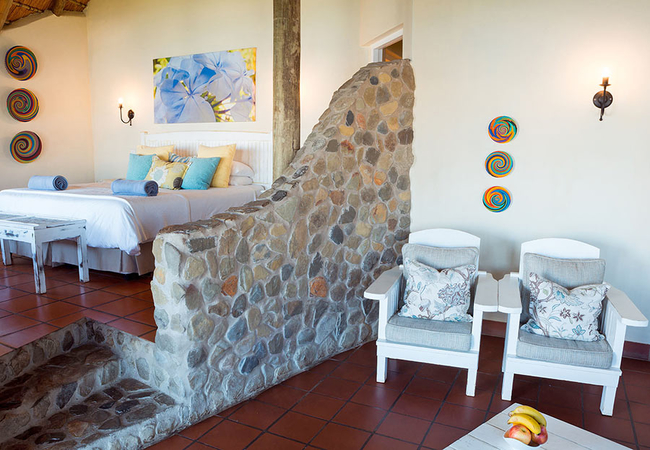 The exclusive Ntabeni suites are expansive, bright and luxurious. Set high up on the hillside, they provide panoramic views of the Indian Ocean, which will take your breath away. The room has a King-size bed, en-suite bathroom with a bath and double outside shower. There is a bar fridge and tea / coffee making facilities.