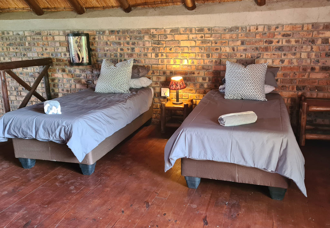 Upstairs is a deck from which to enjoy the view and relax while keeping an eye out for the animals coming by for a drink at the waterholes closely situated to the house.