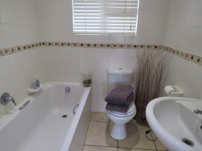 The fully equipped kitchen has a microwave, stove, oven, fridge and all necessary equipment for self catering. The lounge has comfortable furniture and TV with DStv. The living area leads onto a balcony with outdoor furniture and a gas braai.