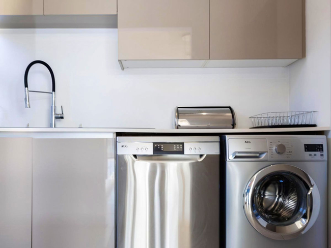 The fully equipped kitchen is a haven for culinary enthusiasts, offering appliances such as a stove, oven, microwave, toaster, fridge-freezer, and tea- and coffee-making facilities. A breakfast bar with stools adds a casual dining option, while a separate scullery is fitted with a dishwasher, washing machine, and tumble dryer for ease during your stay.