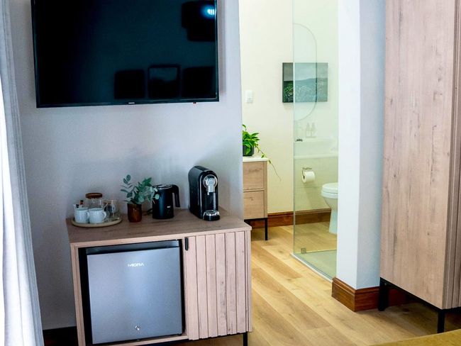 The Merlot Room features a main king-size bedroom and a comfortable sofa in the entrance area, providing a spacious and welcoming environment. The luxury en-suite bathroom includes both a shower and a tub, while the room itself is equipped with air-conditioning, a hairdryer, a bar fridge, and tea and coffee-making facilities. For entertainment and convenience, guests have access to Wi-Fi, a TV with DStv or satellite channels, a desk, a sitting area, and an in-room safe. The Merlot Room is non-smoking, making it a perfect choice for a relaxing and comfortable stay.