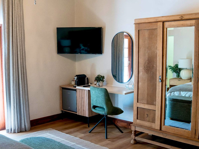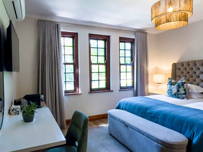 The Cabernet Room is a superior room featuring an interleading door to the Shiraz Room, making it ideal for families. It offers an en-suite bathroom with a bath, shower, basin, and toilet, along with tea and coffee-making facilities, a bar fridge, air-conditioning, and a hairdryer for added convenience. Guests can enjoy Wi-Fi, a TV with DStv or satellite channels, a sitting area, a desk, and a garden view. The Cabernet Room is non-smoking, providing a comfortable and relaxing space for your stay.