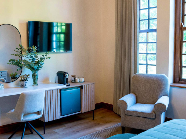 The Malbec Room is a comfortable double room located within the Manor House, offering a calm and inviting space for guests. It features an en-suite bathroom with a bath, shower, basin, and toilet. The room includes air-conditioning, a heater, a bar fridge, a hairdryer, and tea and coffee-making facilities for added convenience. Guests can enjoy modern comforts such as Wi-Fi, a TV with DStv or satellite channels, and an in-room safe. The Malbec Room is non-smoking and offers lovely views of the garden, making it an ideal choice for a relaxing stay.