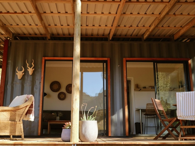 We went there for our anniversity what a pleasent supprise. The road to Verreauxs Eagle is all tar except when you turn off to the cabins it is accessable with a normal car but a higher groubd clearence will help a lot. The booking process went well the communication from the resort is quick and effordless. When we were met at the cabin all things were explained to us. The cabin is 2 containers stacked back to back once inside you will not know, it is styled beautifully with lovely touches and colour schemes. The bedroom have ample space with a double door opening up to the outside veranda. The bathroom area has a nice big shower the layout makes it big enough for 2 people. The kitchen have all the utensils , the 2 plate gas stove is of a high quality and works well there is a sleeper couch which doubles up as lounge with doors that open up in the kitchen and the lounge as well as the side so there will be a nice airflow all doors leads to the veranda which helps a lot to keep the sun at bay. There is a outside bath with a view the only thing that I can fault is that the supply of warm water to the bath runs out quickly so you would have to boil the kettle a few times to fill the bath. The braai drum is next to the veranda a nice touch is the eco blitz and wood that they give you to start. a Few steps down you get your own resevoir (dam) what a life saver stocked with fresh water there you can swims to your content or just enjoy your morning coffee on the deck next to it. When you are braaing in the evening look up the stars is amazing. You can see the road but you get used to some road noice but it is not offputting. a Big thank you to Lucas for arranging some extra ice for us we do appreciate your assistance In the summertime it tends to get very hot - there is no Aircon as it is a Eco resort/Cabin but the fan helps a lot Defenitely one of our better stays , one that I can reccommend with a clear concience. Will we go back there - hell yes.