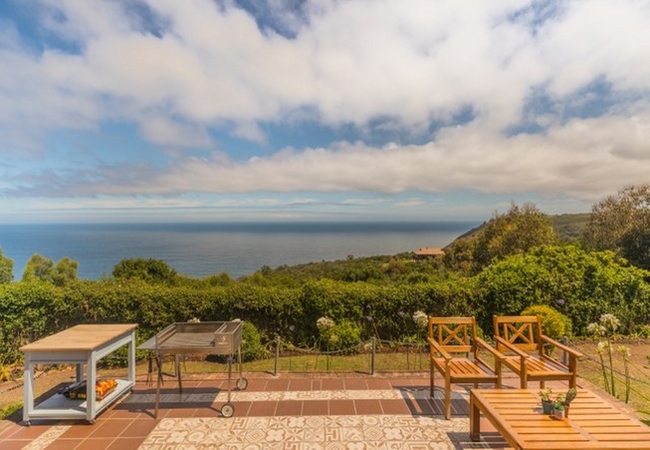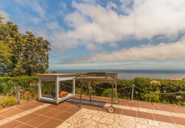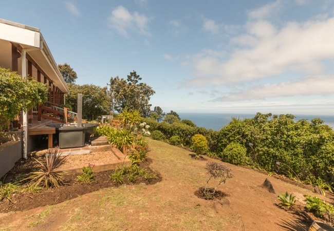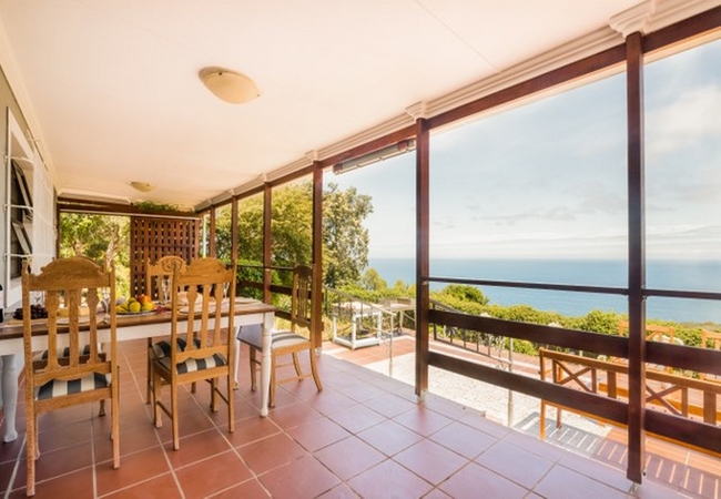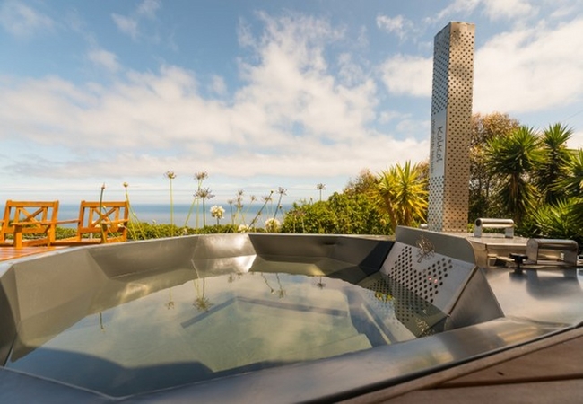 On the outdoor, undercover balcony is an additional 5 seater dining table, comfortable couches plus a Kol Kol wood fired hot-tub / splash pool. The garden is spacious and fully enclosed. The balcony leads down to a large sundeck with sunloungers and portable BBQ/Braai.