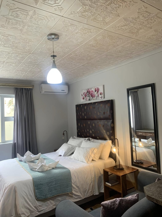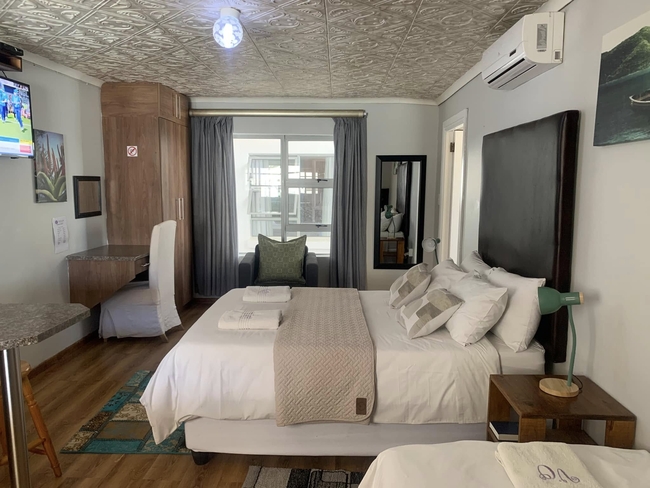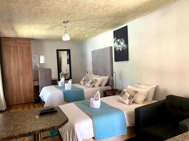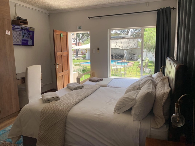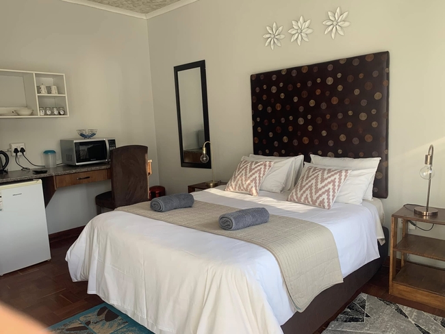 Standard Double Rooms are furnished with a double bed and have a private bathroom fitted with a shower, toilet and basin. The room is air-conditioned and includes a microwave and a bar fridge. Facilities include DStv, air-conditioning and free Wi-Fi. There is a braai area, communal kitchen and meals can be provided on request.