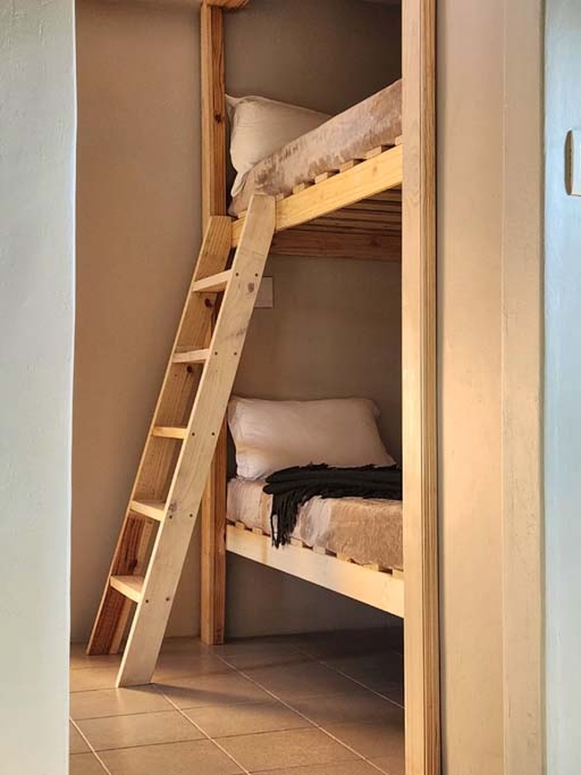Room 4 is furnished with a Queen-size bed and two bunk beds two children. The en-suite bathroom is fitted with a shower, toilet and basin. The room is equipped with a bar fridge, tea / coffee tray, smart TV with Netflix and Wi-Fi is also provided.