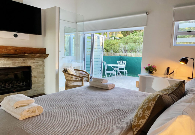 Vida Nova Retreat is a hotel in Hout Bay with tastefully furnished Deluxe and Superior Suites. All the suites have either a private balcony with mountain views or a patio opening onto the lush gardens. Each suite has a fridge, tea / coffee making facilities, hairdryer, bathrobes, toiletries, slippers, Smart TV with Netflix, Wi-Fi and a safe for valuables. An automation system completes the suites.
